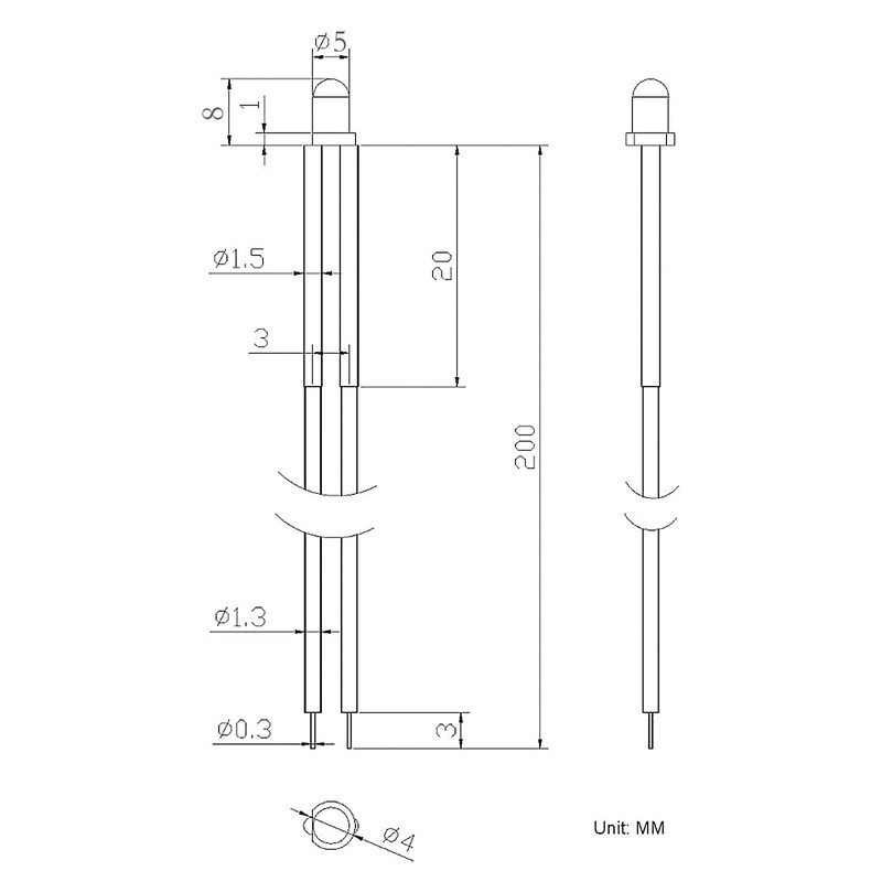 Wire Length: 200mm/7.9inch