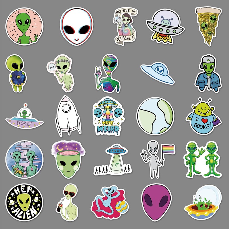 - 【Aliens Stickers】The stickers pack contains Stickers with a size range from 2.0-3.0 inches. All the stickers are 100% brand new. Unique patterns are suitable for children, girls, women and students!