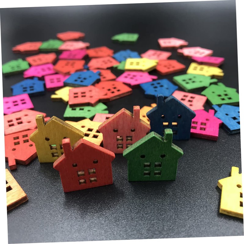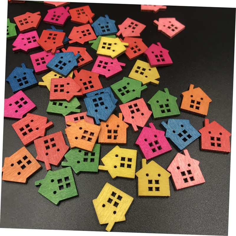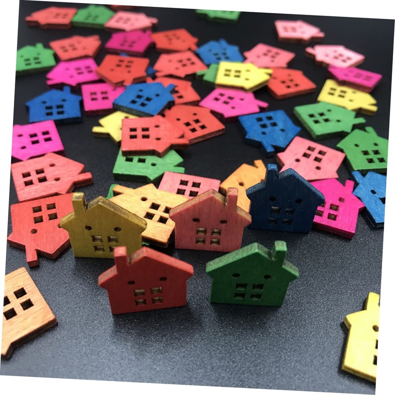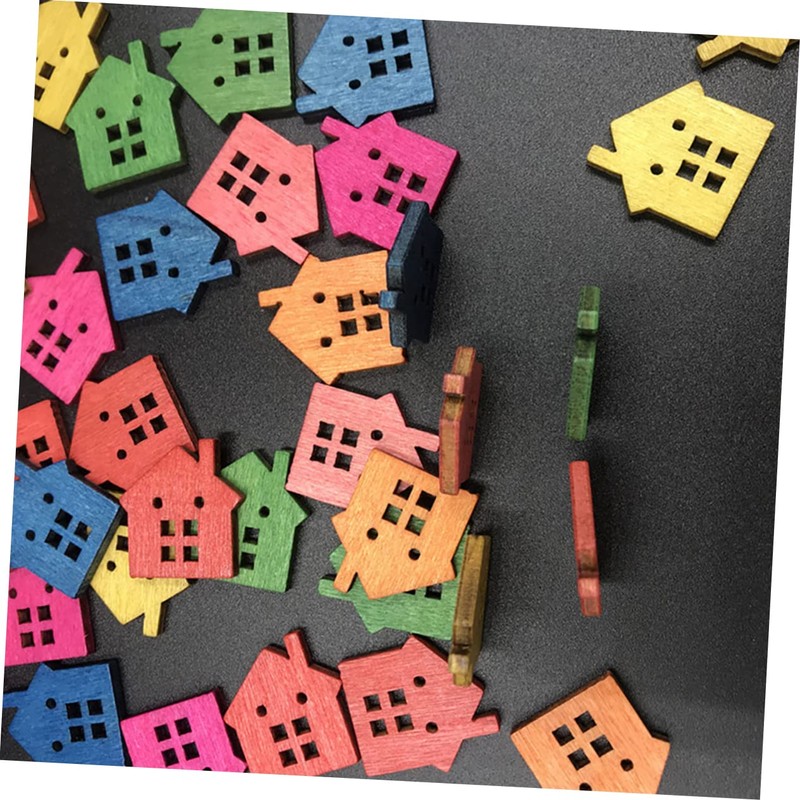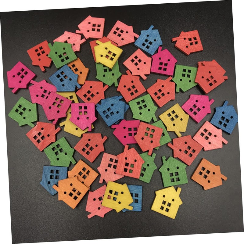 DIY craft button This item is a pack of 50 pcs natural wooden decorative and practical buttons.cartoon wooden buttons You may find a lot of fun by using your imagination.coat buttons Made of quality wood with colored drawing house pattern, these buttons are nice decoration for craft, handmade project, sewing and scrapbooking.vintage buttons DIY crafts will bring a beautiful scenery around you