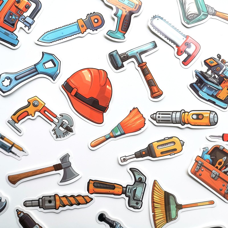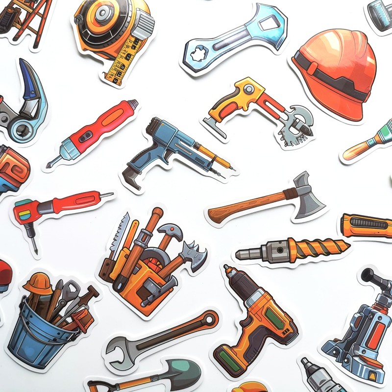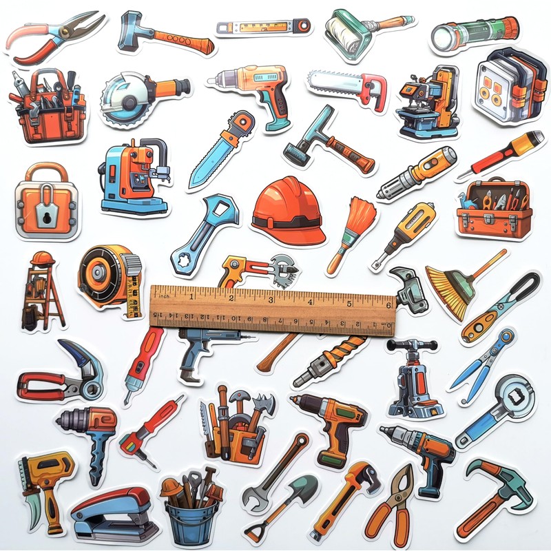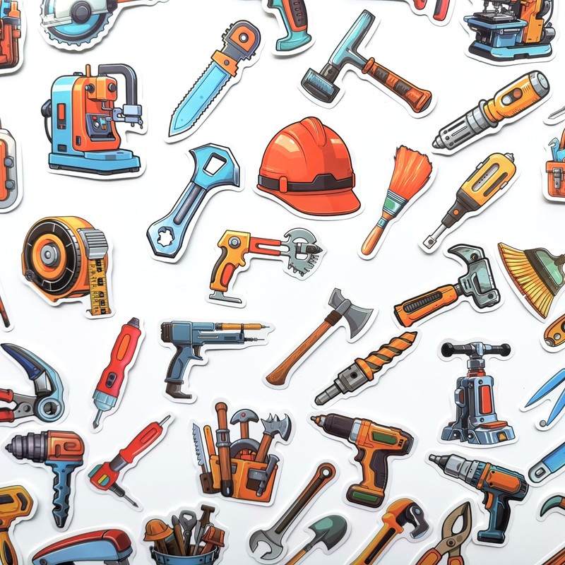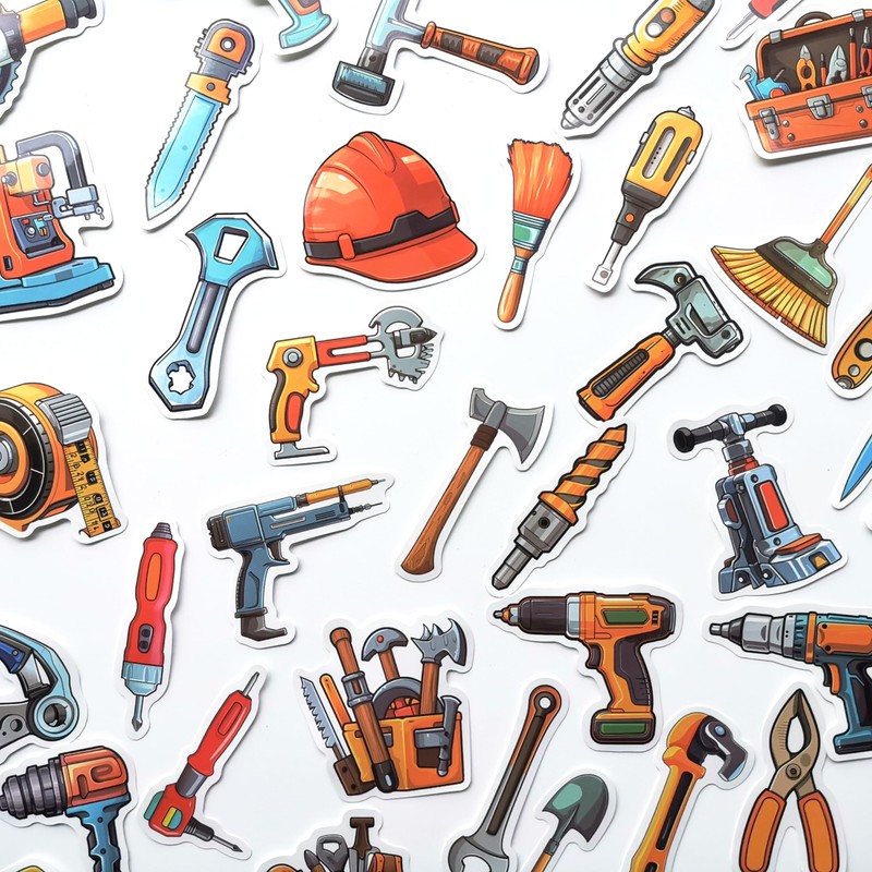 50Pcs Collection of Hand Tool Stickers for Toolbox Cool Tool Storage Decals Equipment Graphics Tool Names for Kids