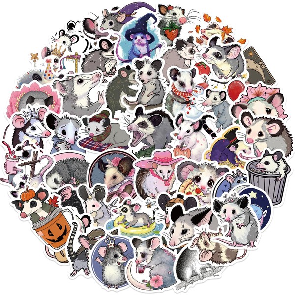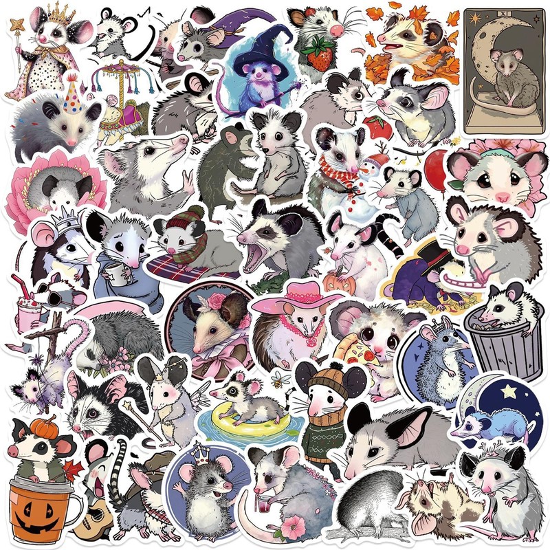 50Pcs Cute Rat Stickers Opossum Sticker Pack for Water Bottles, Laptops, Vinyl Waterproof Decals Possum Party Favors Supplies, Funny Opossum Gifts (Possum)