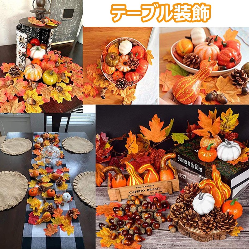 - 【セット内容】ハロウィン かぼちゃ 飾りセット: カエデの葉30枚、さまざまなサイズと色のカボチャ8個、どんぐり10個、松ぼっくり2個、合計50個。 感謝祭、ハロウィン、クリスマス、秋のパーティーに最適です。