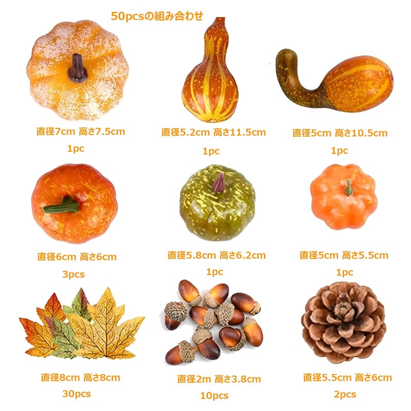 ハロウィン かぼちゃ飾りセット 50PCS ハロウィン 偽南瓜 紅葉 どんぐり 松ぼっくり 組み合わせ 感謝祭 パーティー 店舗 イベント 結婚式 リース DIY 撮影小道具 屋外 店舗 部屋 飾り付け ハロウィーンプレゼント
