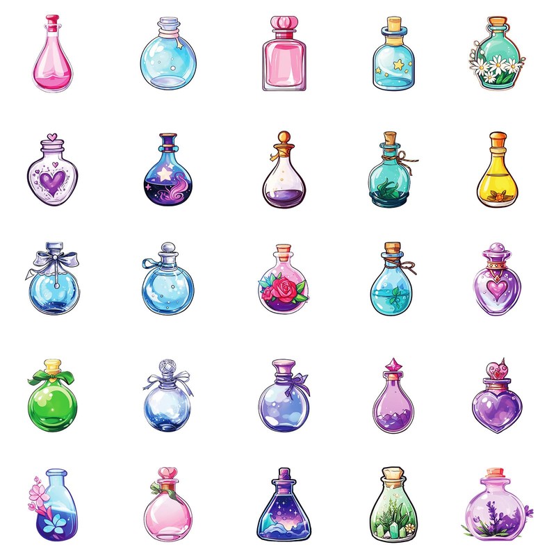 | Color: | 50pcs Fantasy Magic Potion Bottle Waterproof Decorative Sticker |