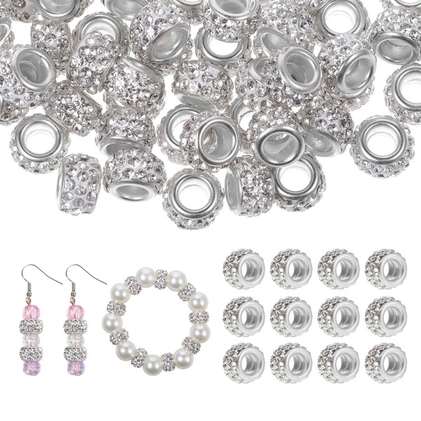 50pcs Large Hole Rhinestone European Beads 11mm Diamond Bead Sparkly Rondelle Spacer Beads Bling Rhinestone Hair Bead for DIY Bracelet Necklace Earring Crafts Jewelry Making