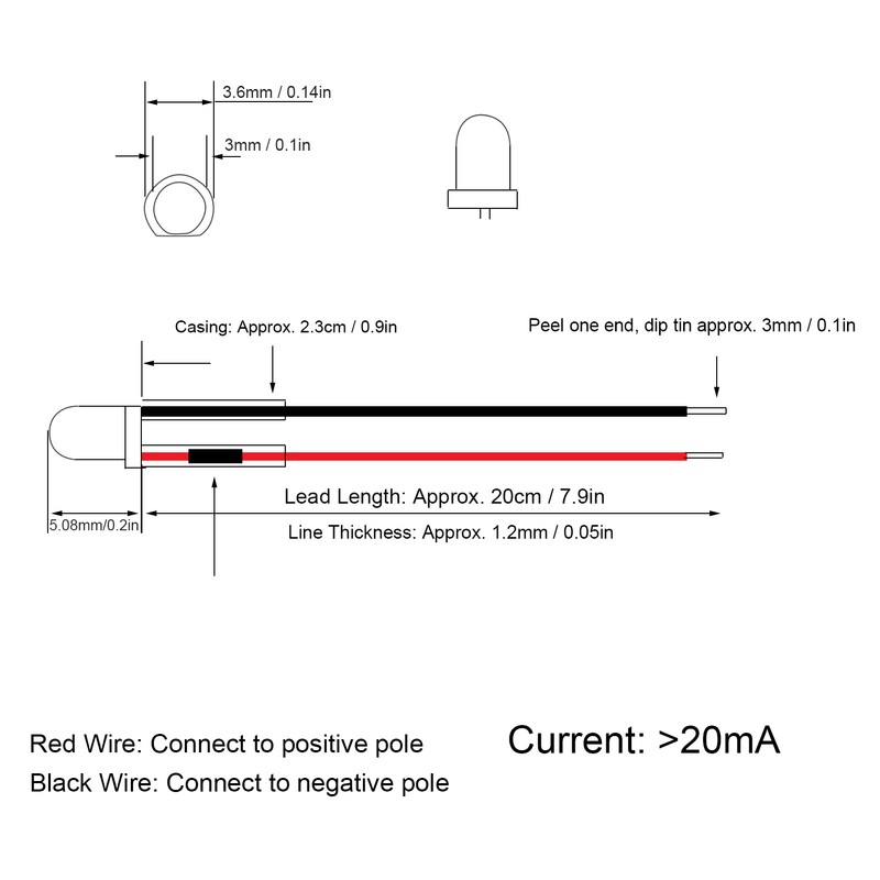 LED Light Bead Diameter: Approx. 3mm / 0.1in