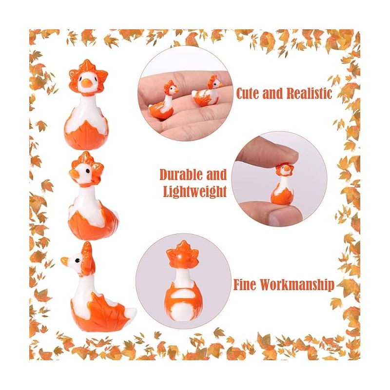 - Fun Design: Taking autumn and mini goose as the design theme, we designed and crafted these tiny resin goose. Each mini goose wears a maple leaf hat and maple leaf clothes, full of autumn ambiance.
