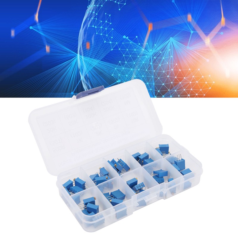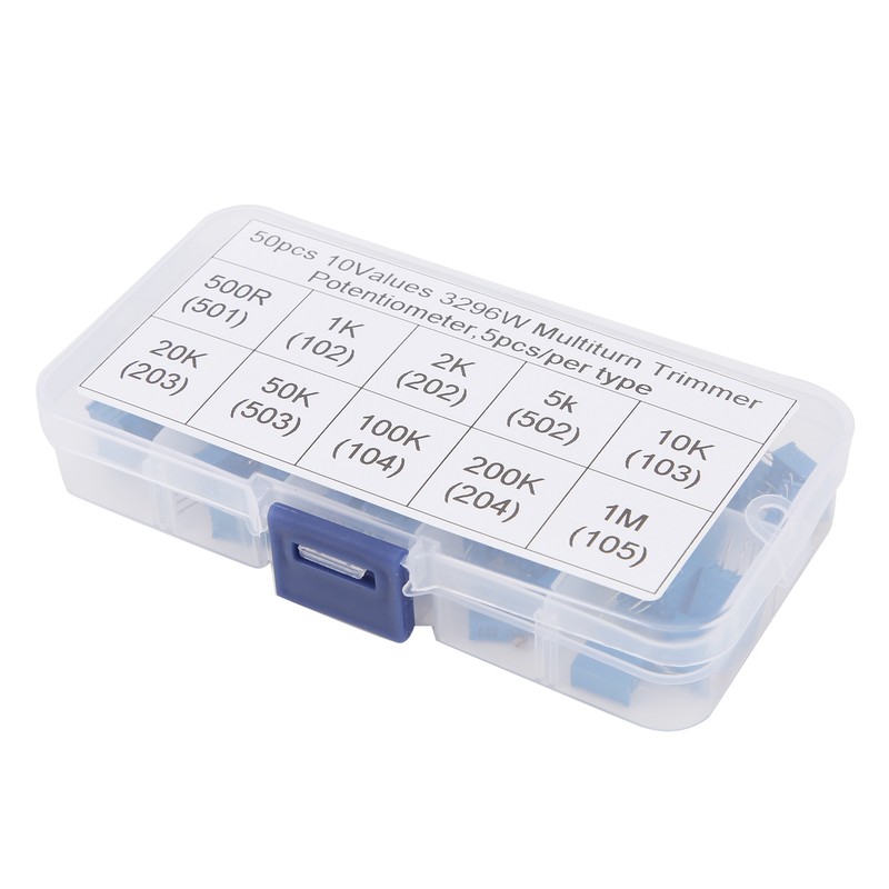 50pcs Variable Resistor 10 Values 3296W Regulating Resistance Multiturn Trimmer Potentiometer 100Ω1MΩ
