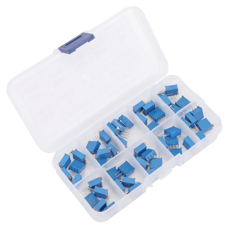 1、High quality 3296W multiturn trimmer potentiometer classification kit, a variety of options. 2、Comes with a plastic box for easy storage and cleaning, well packed and nicely indexed. 3、Used inside the equipment or printed circuit board, the resistance is adjustable. 4、Universal, this kind of variable resistor can be used that requires no extra step for simple operation. 5、Entitled with practical adaptability, such kinds of electrical supplies can keep their high performance for a long time.