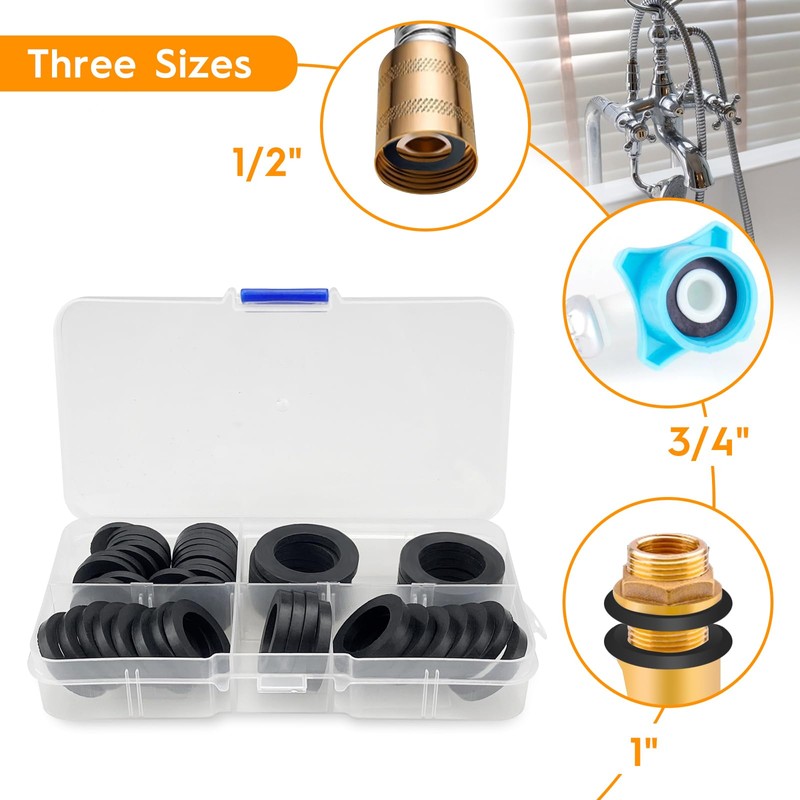 - 1, 【Package Information】: 10pcs 1" washer ring, 20pcs 1/2" washer ring, 20pcs 3/4" washer ring, 1pc storage box.