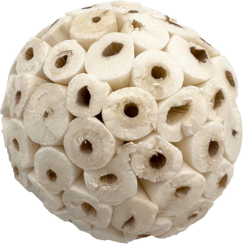 - These small sized natural chewable bird ball are made from the root of the Sola plant. This material is cut to size and air dried making for a perfect foraging and shredding bird foot toy.