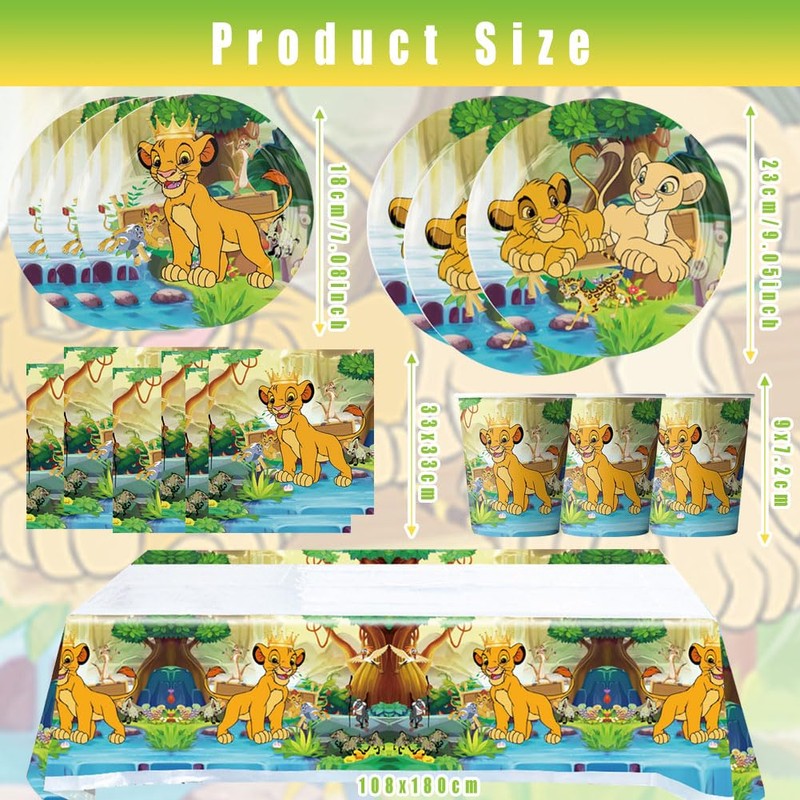 • 51 Pcs Lion Party Tableware: Lion theme party set, including 51PCS, including 10 7 -inch plates, 10 9 -inch plates, 1 tablecloth, 20 paper towels, 10 paper cups, perfect for a theme party supplies, a very attractive and stunning the lion party kit containing all stuffs you need to impress your child and guests.