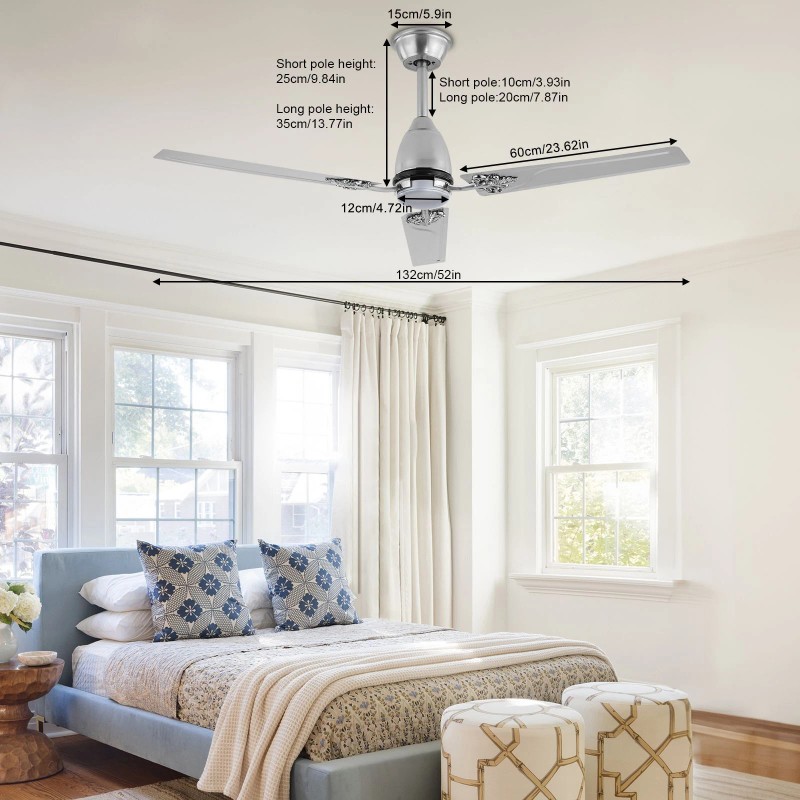 Easy to Install:This ceiling fan is easy to install. You only need to follow the simple steps shown in the instructions and install it patiently. It can be put into use soon.