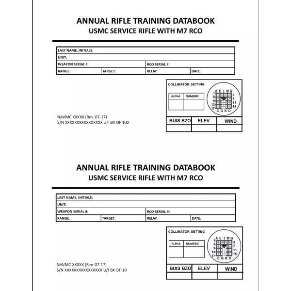 52 Page USMC NAVMC ANNUAL RIFLE TRAINING DATABOOK M4 w/ M7 RCO Manual on Data CD