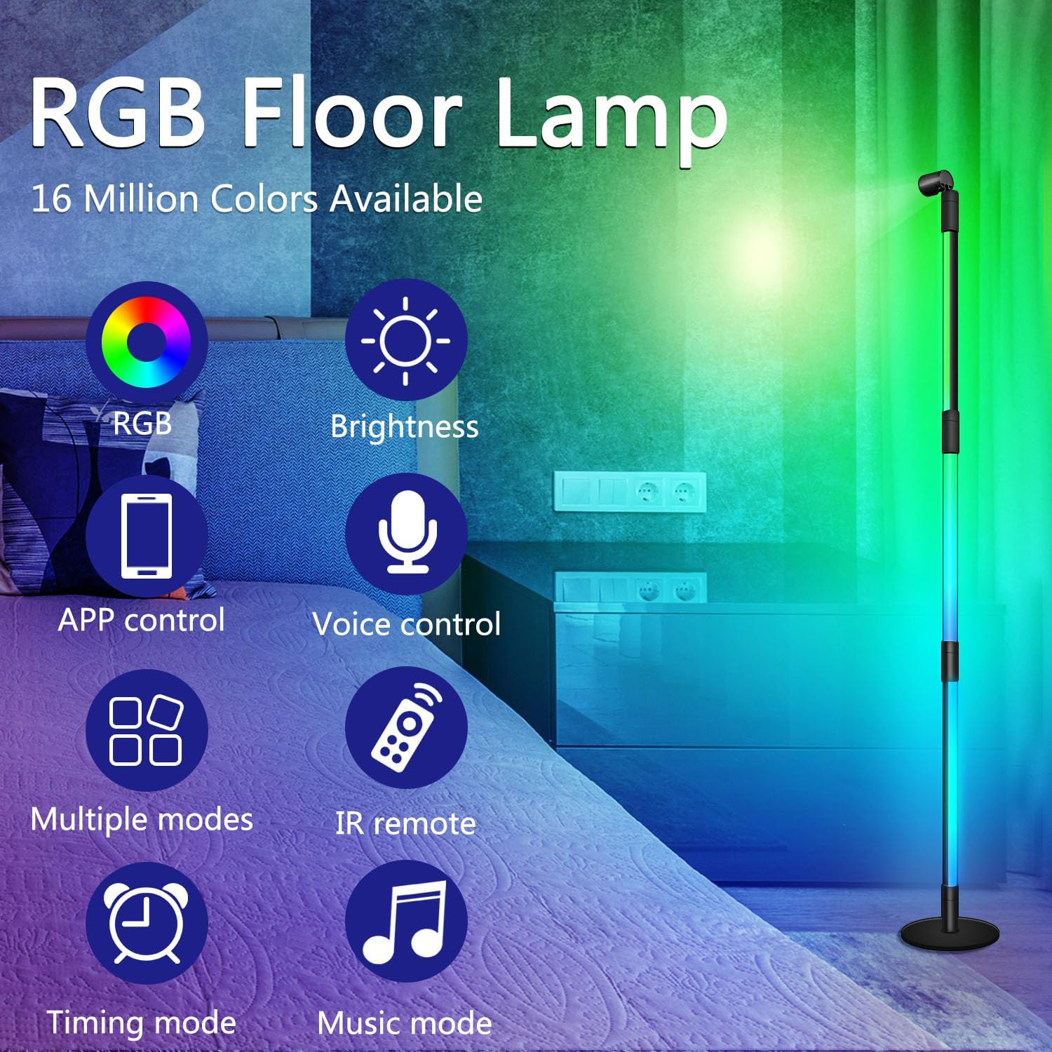 53" RGB LED Corner Floor Lamp Music Sync for Living Room Ambient Mood Lighting