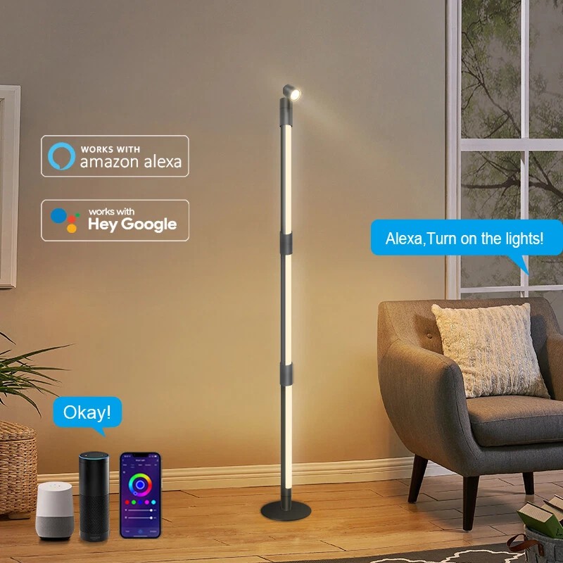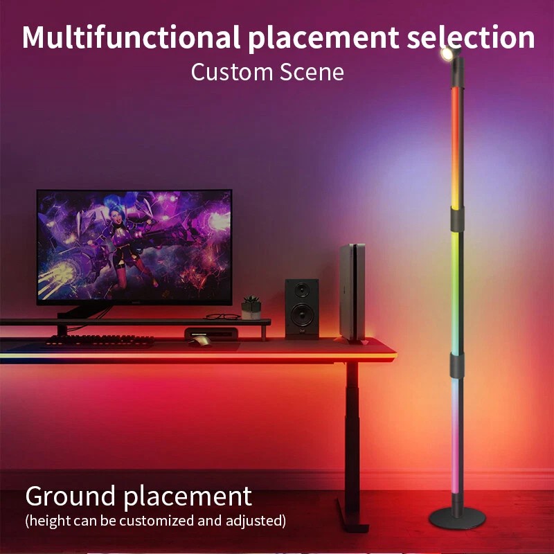53" RGB LED Corner Floor Lamp RGBIC Ambient Light App DIY IR Dimmable Music Sync