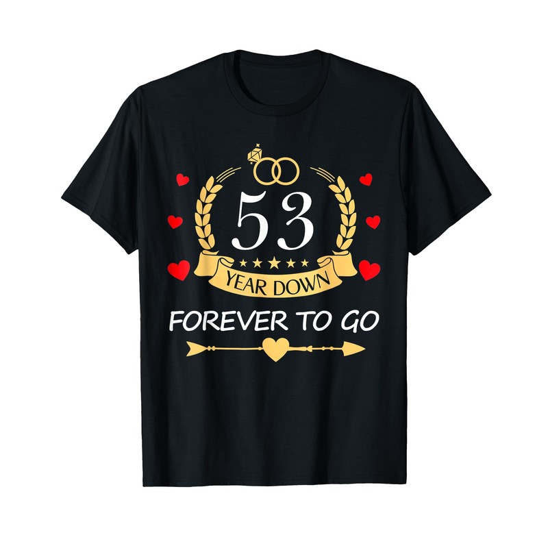 - 53 Years Down Forever To Go Shirt is a perfect 53rd Wedding Anniversary gift outfit for Him or her when You were married 53 years ago. It is a great gift idea for Valentine's Day, Halloween, Thanksgiving, and Christmas for 53 Years Marriage Couple.