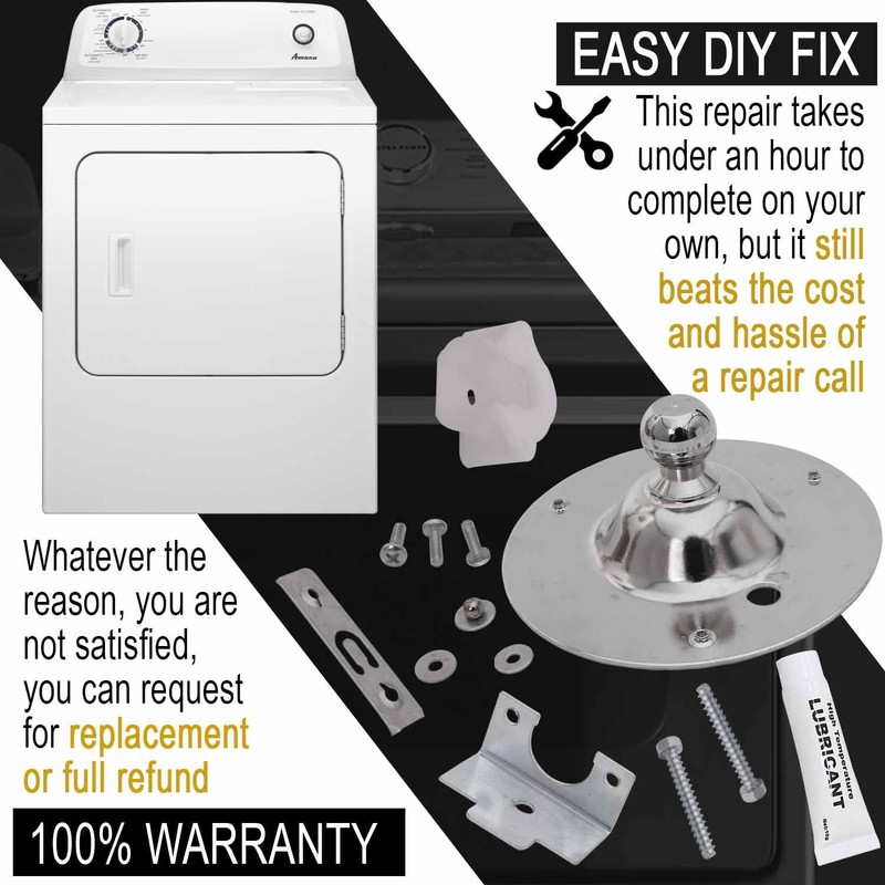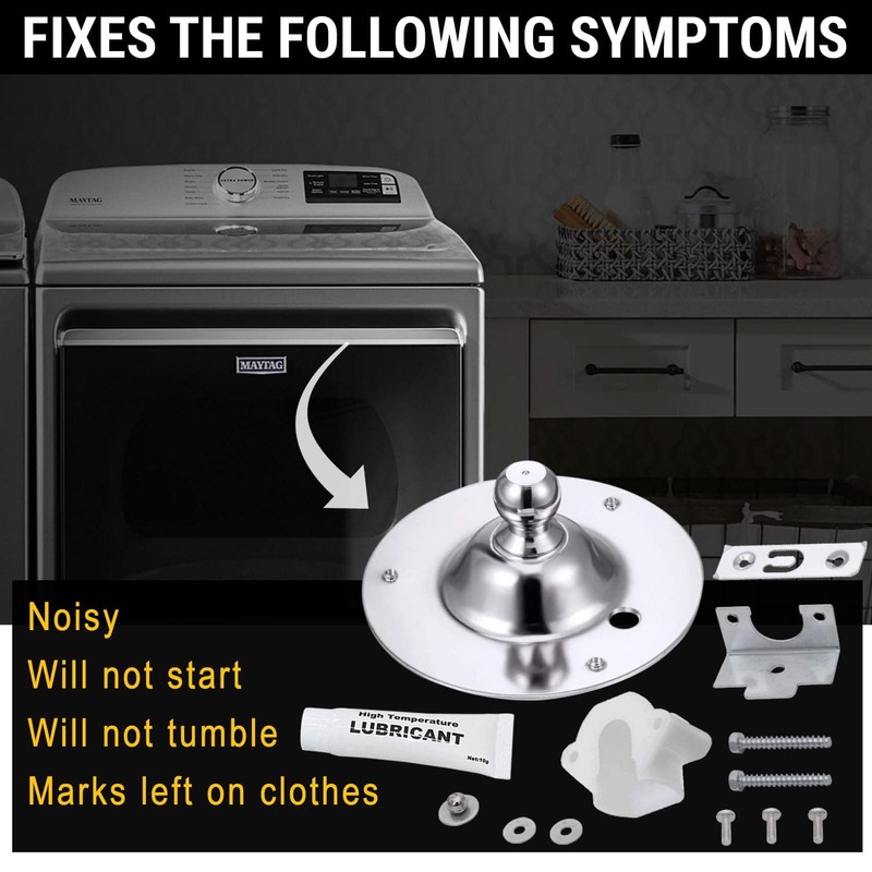• EASY TO INSTALL: This part fixes the following symptoms: Not tumble Noisy, Fail to start, No heat or not enough heat. Set includes the ball shaft, bearing, ball bearing, ball bearing retainer, high temp. lubricant, and screws.