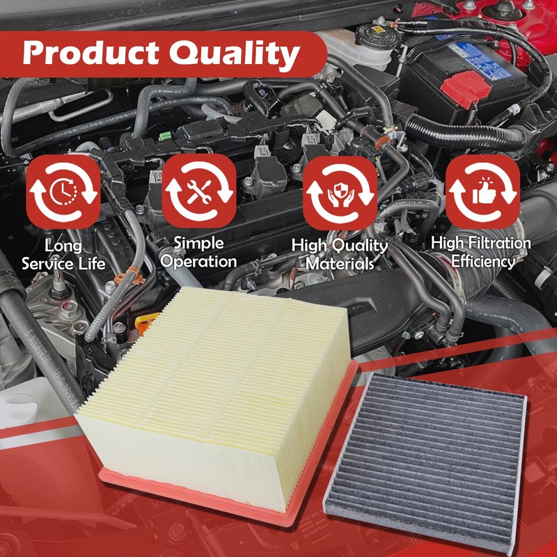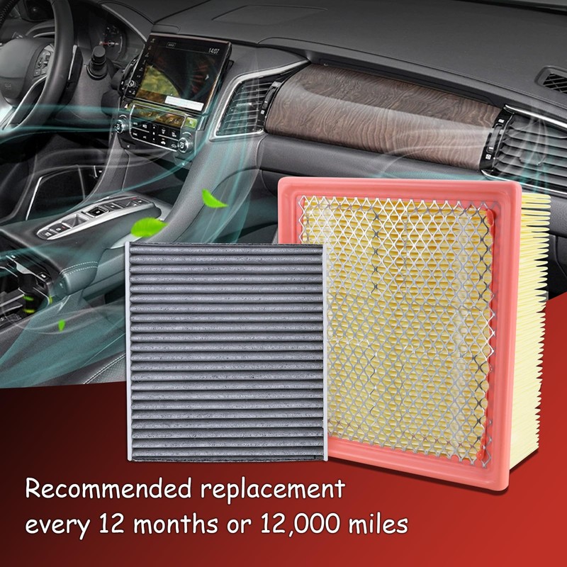 - 【Including】 1 x engine air filter, 1 x cabin air filter. Recommended replacement every 12 months or 12,000 miles.