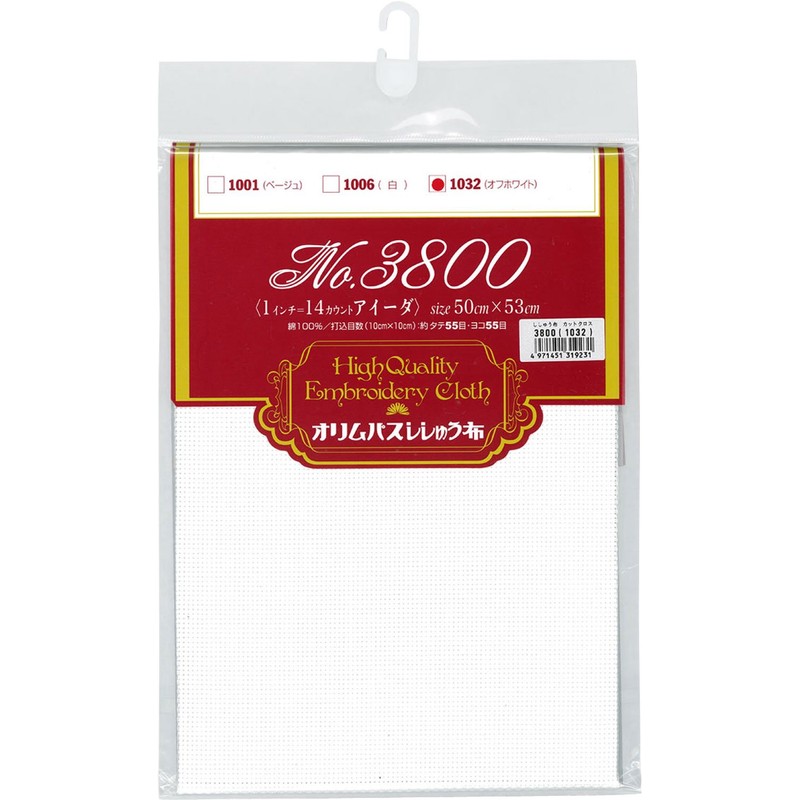 オリムパス製絲 刺繍布(約)53×50cmカット/No.3800アイダー・オフホワイト