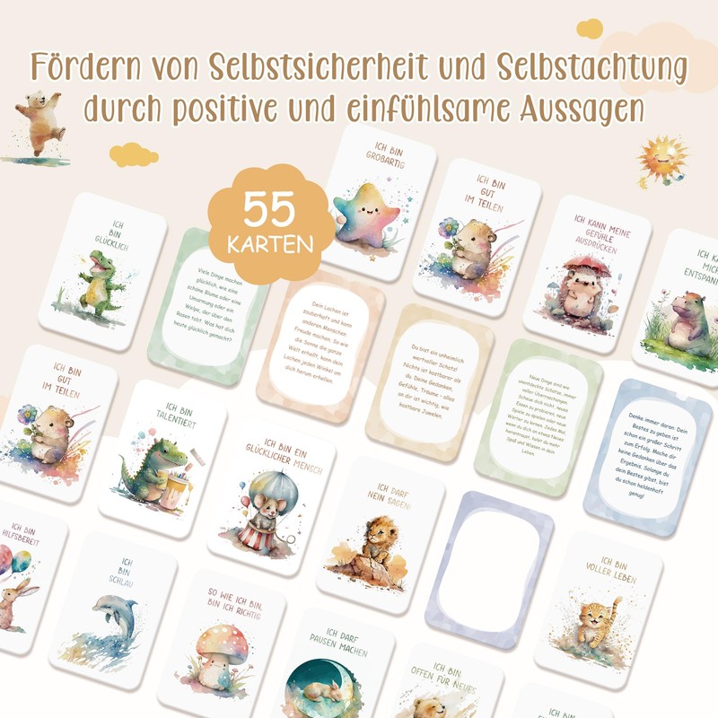 55 Affirmation Cards for Children with Stand - Motivational Cards to Strengthen Self-Confidence and Promote Resilience, Ideal for Parent-Child Time, Suitable for Boys and Girls (55AI)