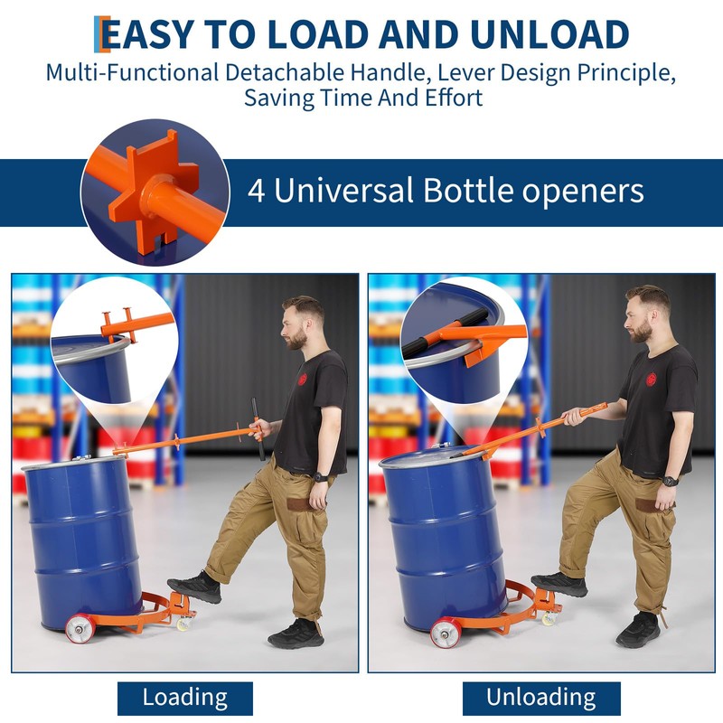 - [Effort-Saving Handle] The Removable Handle Can Be Used As A Lever For Effortless Loading And Unloading Of Drums. The Non-Slip Design Provides A Comfortable Grip And Reduces Effort.