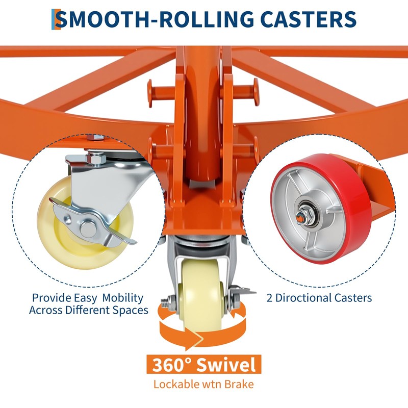 - [Easy To Move] This Drum Cart Features Two Fixed Steel Wheels And One 360-Degree Swivel Wheel With Brakes, Allowing For Smooth Gliding In Any Direction. It'S Easy To Maneuver Even In Tight Spaces.
