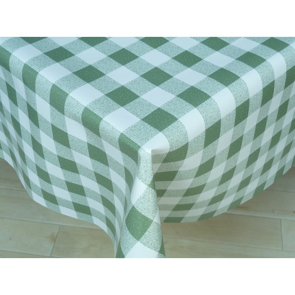 55" ROUND PVC/VINYL TABLECLOTH - GREEN GINGHAM