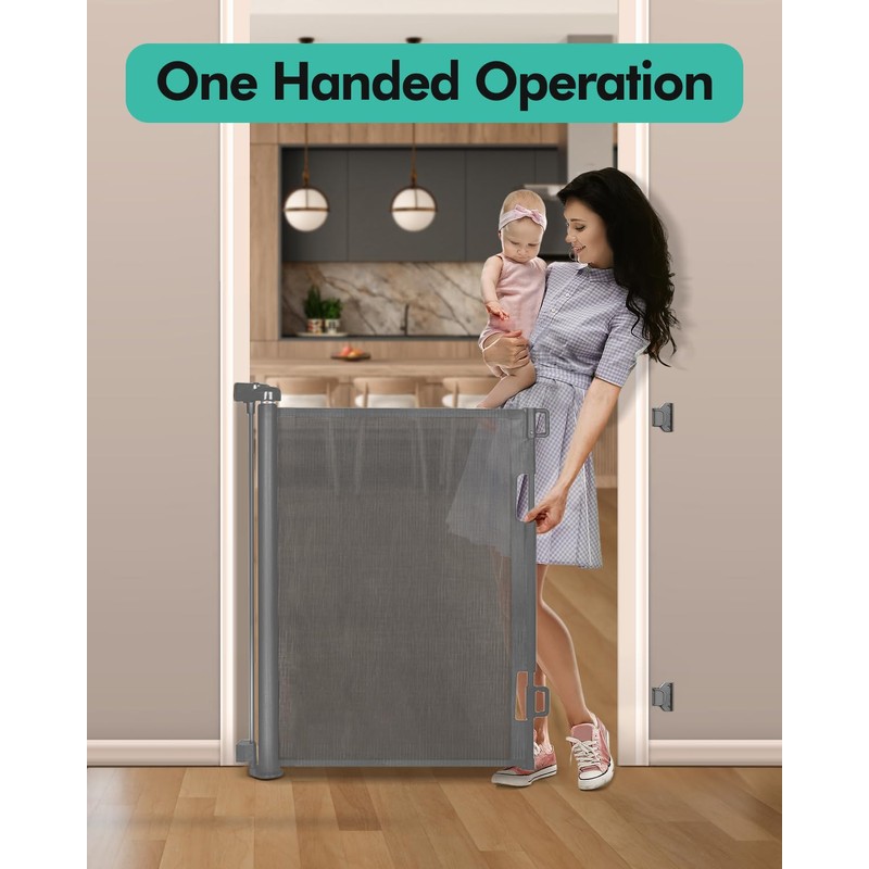 55" Wide Retractable Baby Gates for Stairs,Mesh Dog Gate for Doorways, Wide Toddlers Gates for Hallways, Indoor & Outdoor,Grey