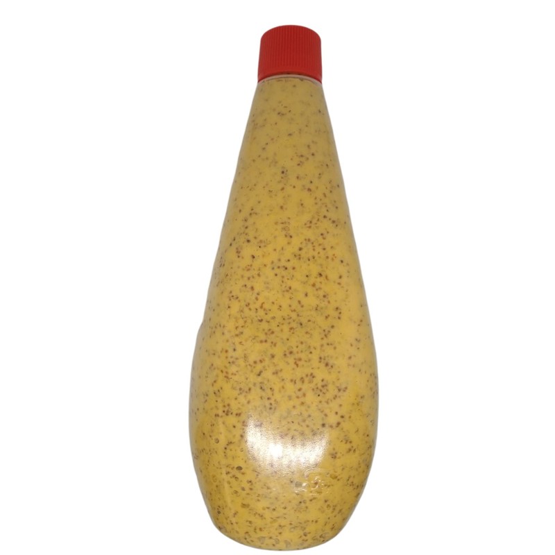 - 原材料:からし、醸造酢、発酵調味料、果糖ブドウ糖液糖、香辛料、食塩、レモン果汁、たん白加水分解物、酒精、増粘多糖類、着色料(ウコン)、ビタミンC、(原材料の一部に大豆、リンゴを含む)