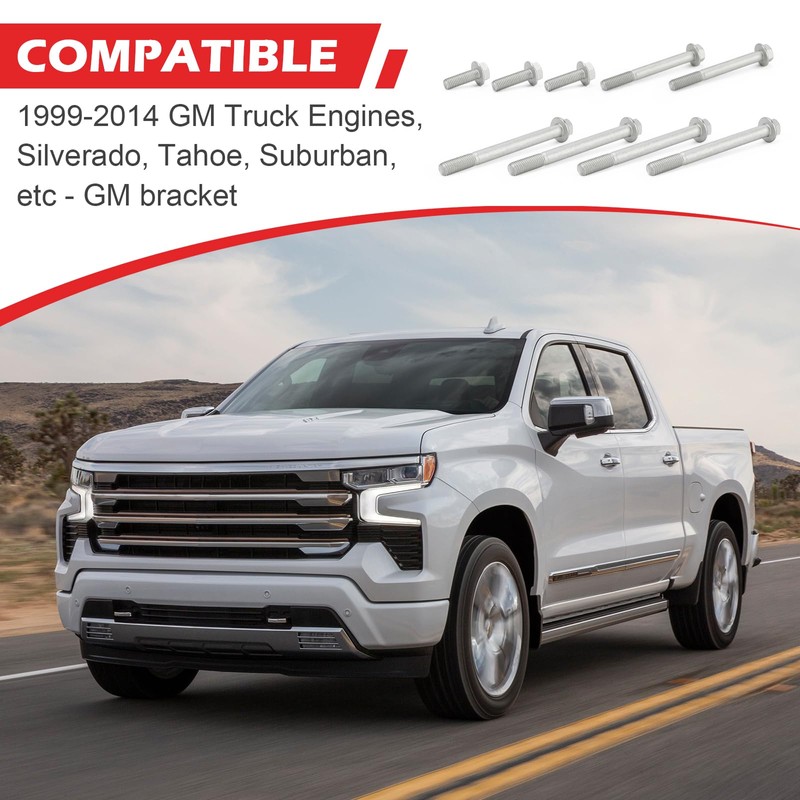 - Wide Compatibility ===== This Billet bolt kit is specifically designed for use with GM engines in various models, including the 1999-2014 Silverado, Tahoe, Suburban, and other compatible vehicles