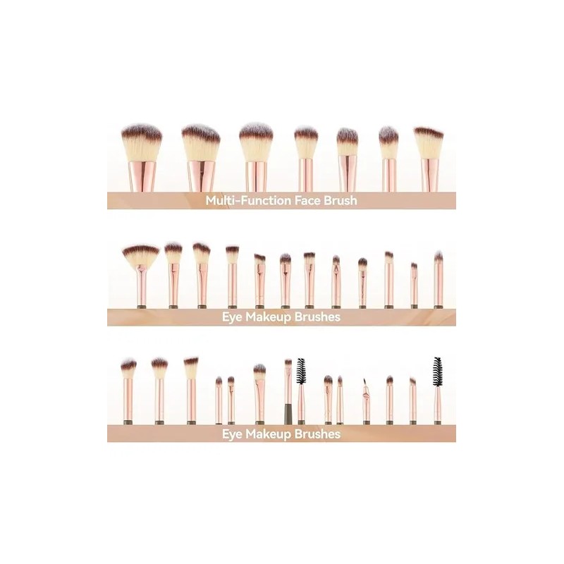 3.30 Pinceles de Maquillaje Suaves Nuestros pinceles de maquillaje están hechos de cerdas sintéticas súper suaves que son suaves con la piel y proporcionan una excelente aplicación de maquillaje.30 pinceles con diferentes funciones son un conjunto completo de herramientas de maquillaje para todas sus necesidades de maquillaje.
