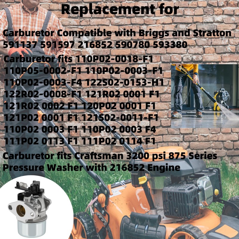 591137 Carburetor Tune Up Kit Fits for Briggs and Stratton 590780 591597 590948 594287 216852 593380 875 8.75 series 190cc Engine, Carb for Husqvarna 775ex Lawn Mower for Troy-Bilt Pressure Washer