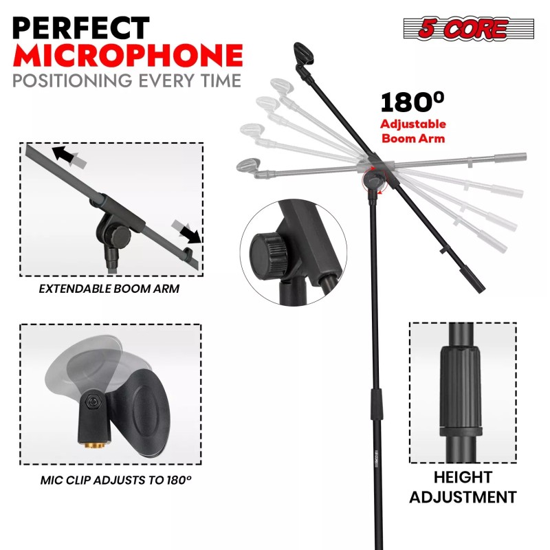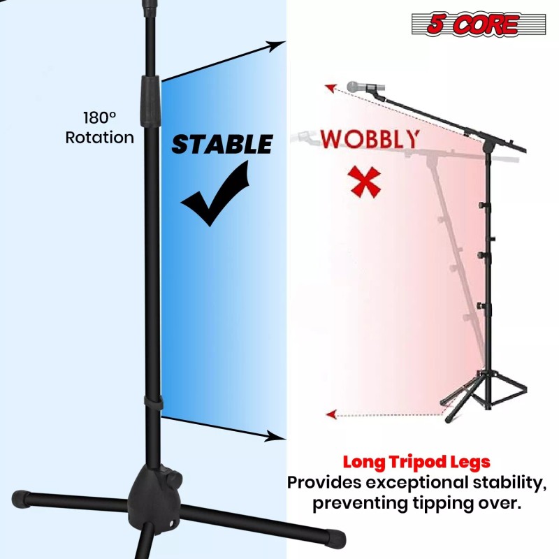 5Core Microphone Stand 360° Rotating Mic Clip Boom Arm Foldable Tripod Holder...