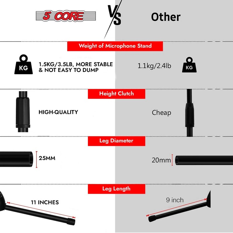 4. TRIPOD MIC STAND - Sturdy metal legs with rubber caps for excellent stability even on uneven surface