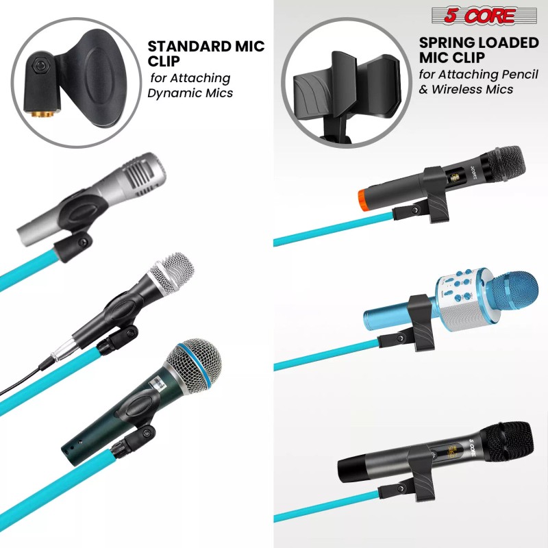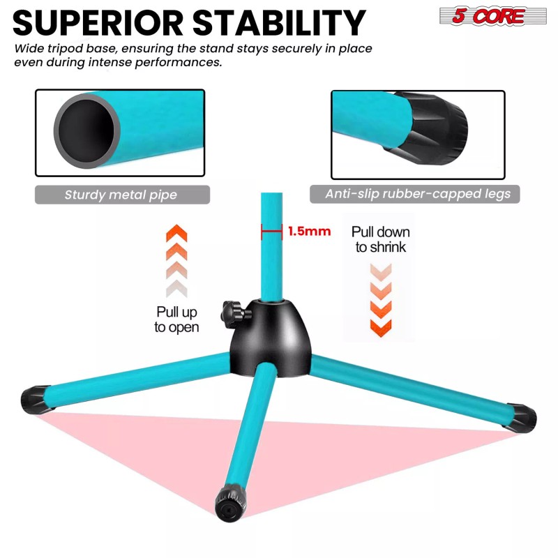 5Core Microphone Stand 360° Rotating Mic Clip Boom Arm Foldable Tripod Holder - Sky Blue