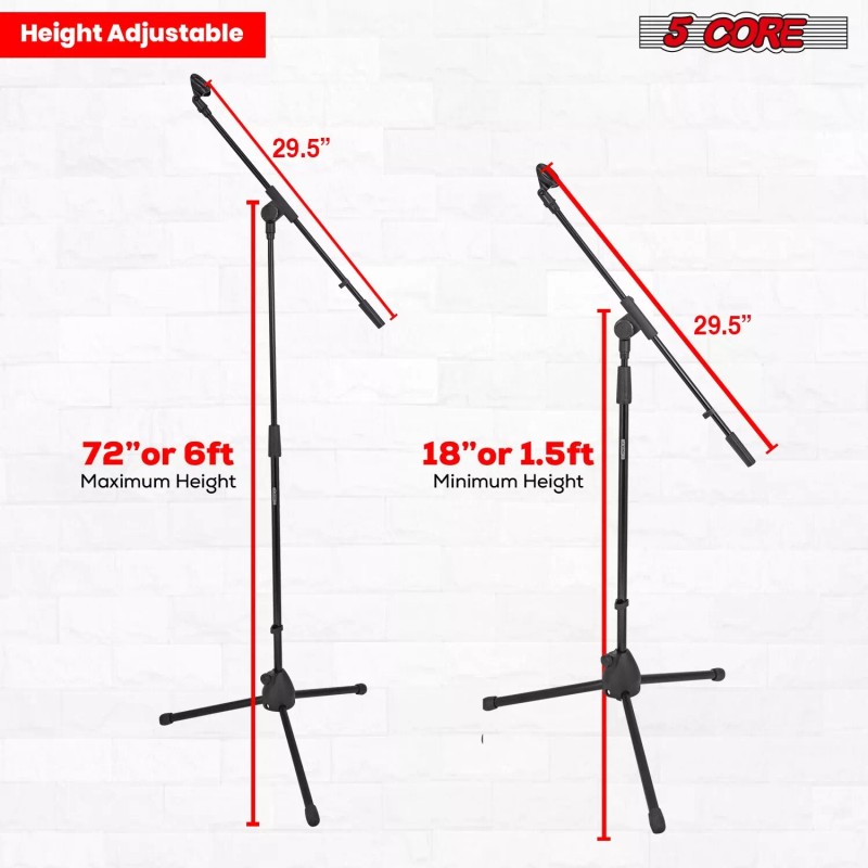 Improve your performance with our height-adjustable tripod boom mic stand, offering a range from 18 inches to 72 inches. The extendable boom arm has a length of 29.5 inches, and it can rotate 180 degrees, providing versatile positioning.