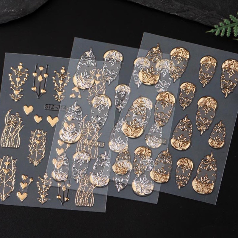 - Gold Nail Stickers Kit: You will get 3 sheets gold flower nail declas. Each pattern has a unique art design, attractive and creative, can add a strong holiday atmosphere.Perfect for women girls, DIY salon nail design, creates cute nail decorations.