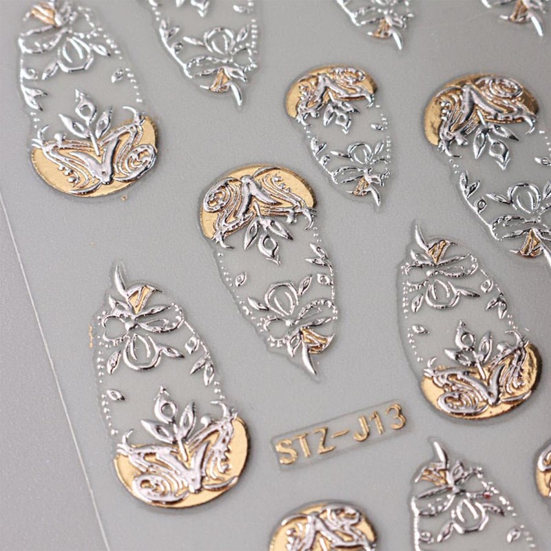- Easy to Use: Retro style luxury gold nail art supplies is self-adhesive and requires no glue, just remove sticker then stick this 3d nail stickers on your nail. Apply top coat gel to seal to make the stickers last longer.