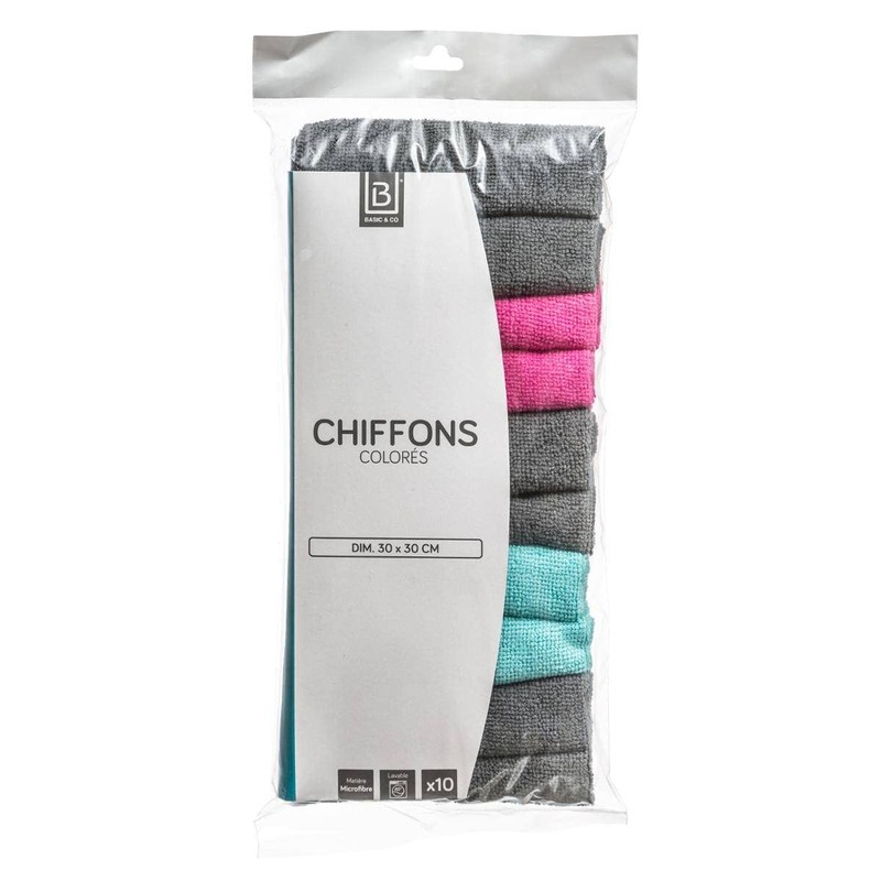 - Pack of 10 cloths, polyester and polyamide, dimensions 30 x 30 cm
