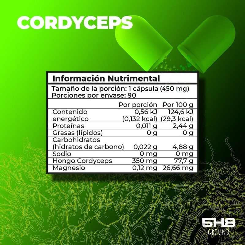 - Contiene 450 mg de hongo Cordyceps por cápsula, conocido por su contribución natural a la nutrición con fibra, vitaminas y minerales.