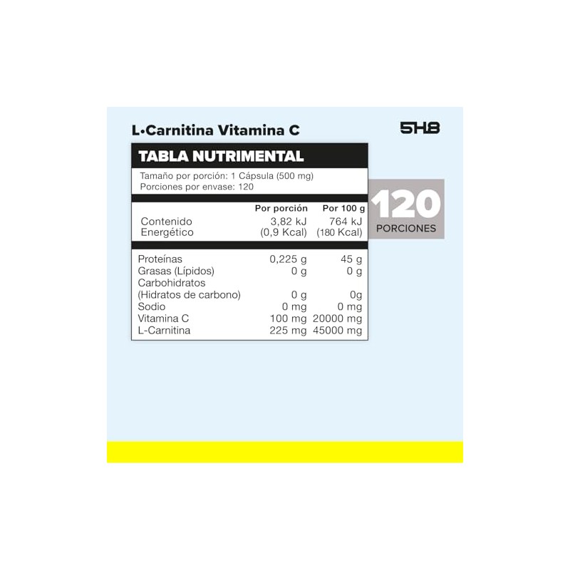 🌟 ⭐ 5H8 Nutrition L-Carnitina + Vitamina C | 120 Cápsulas | Suplemento Alimenticio con Fórmula Termogénica ⭐ 🌟