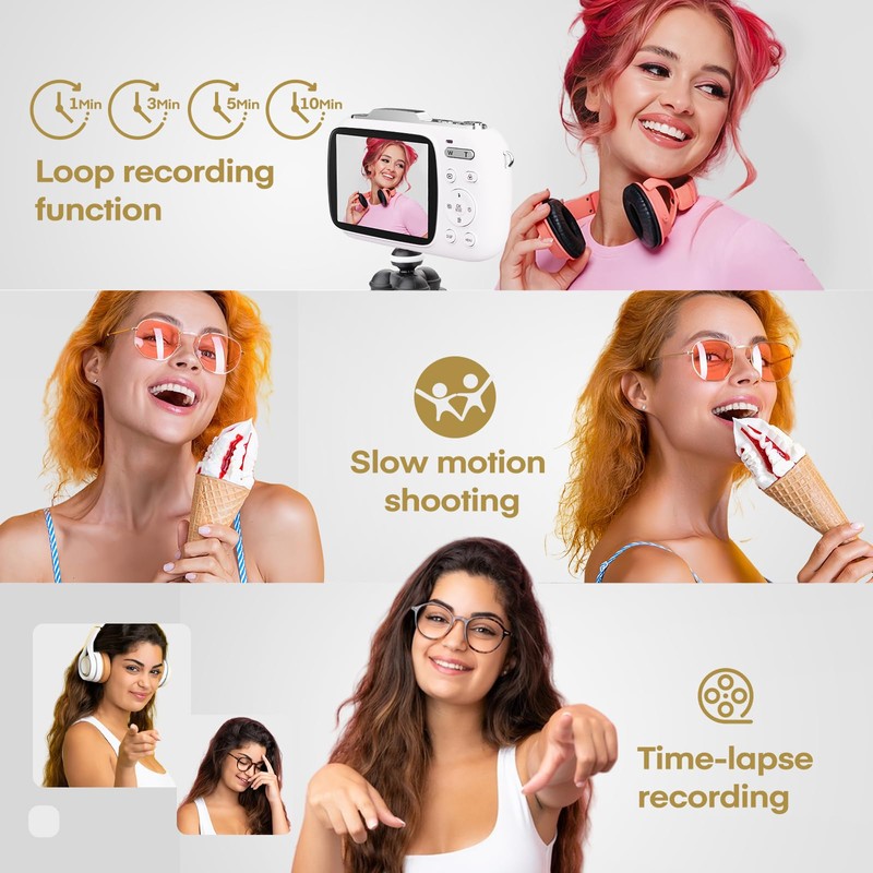 - 5K Digital Camera with Greeting Card:Ultra HD 5K video shooting brings clearer details and true colors, 80MP ultra-high pixel photography performance can capture every fine texture and rich layers (L*W*H: 4.33*0.96*2.66 Inches,Weight: 0.7lbs)
