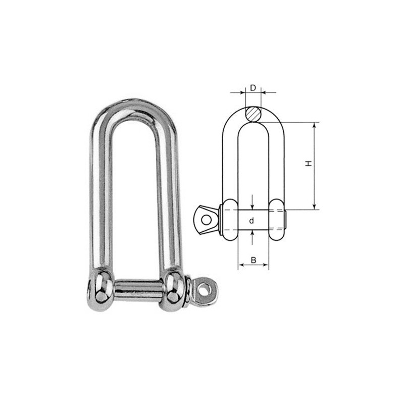 5mm Long Dee Shackle - A4 (Marine Grade) Stainless - 2 Pack
