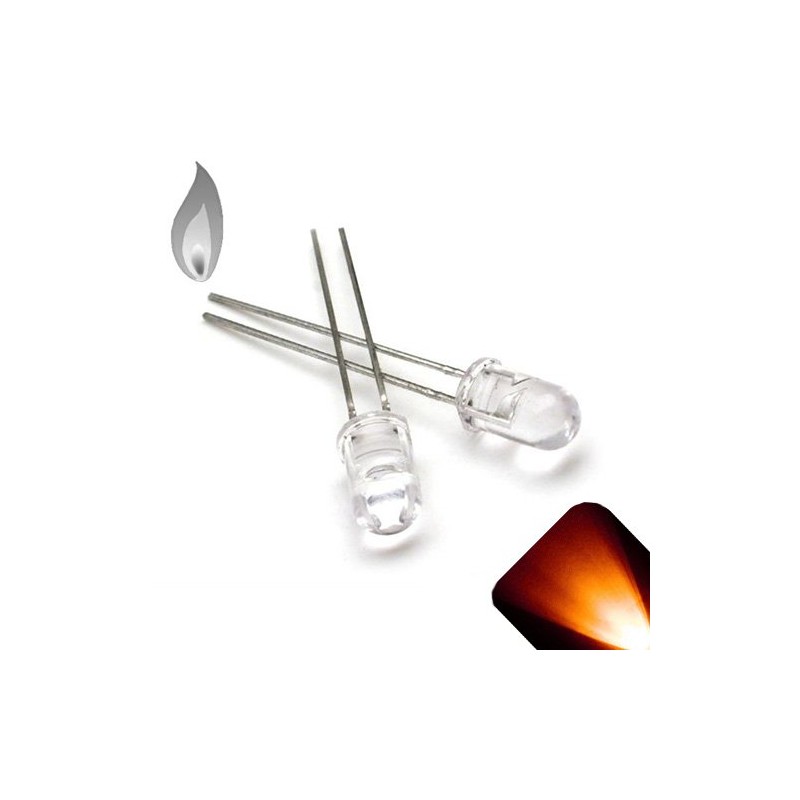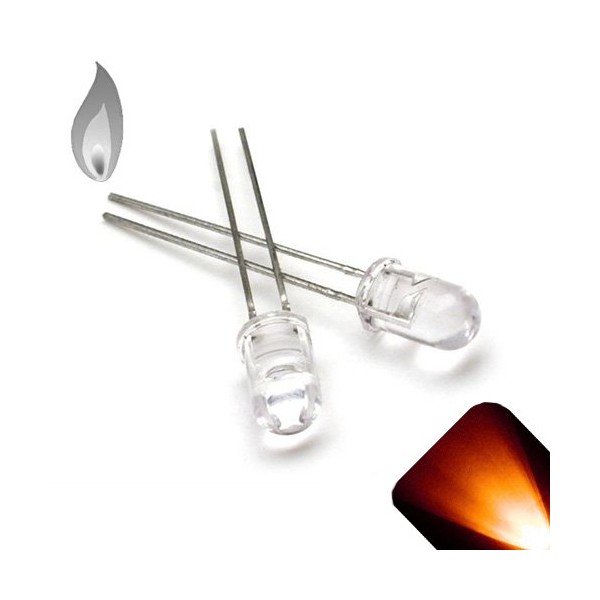- Size: 5mm Round Top Clear Flickering / Candle, Color: Orange/Amber, Luminosity: 9,000-10,000 mcd