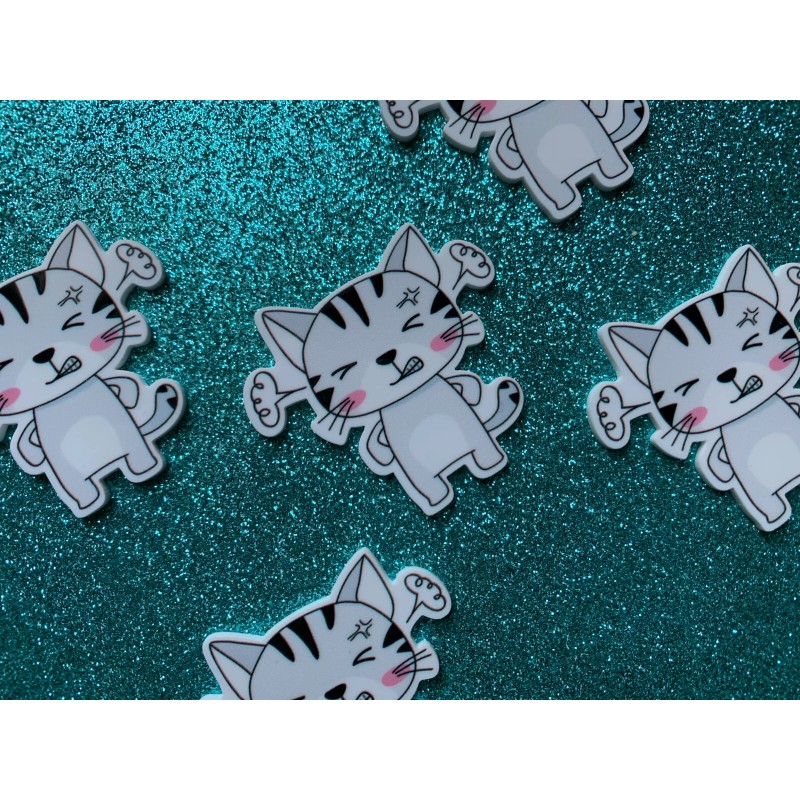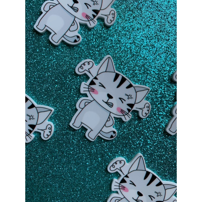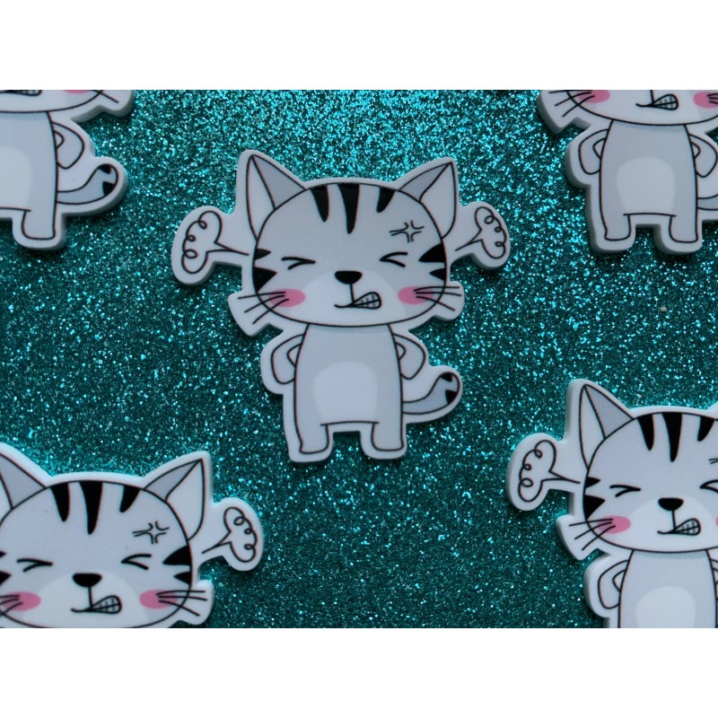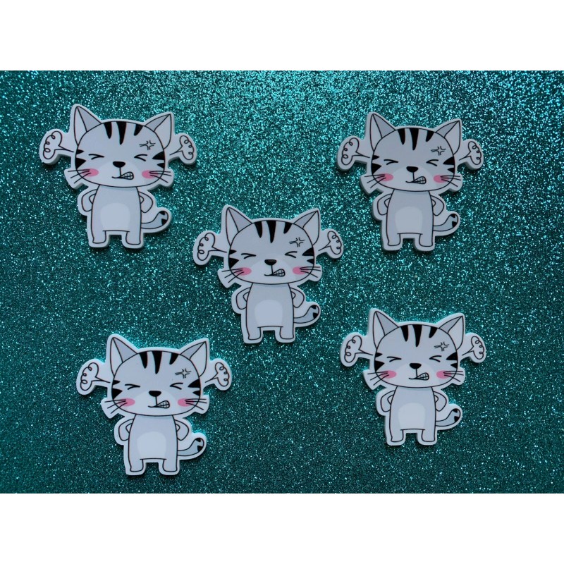 5pc. Angrey Cats, Kitty Planar Resin Flatback, Cabochon, Bow Center,