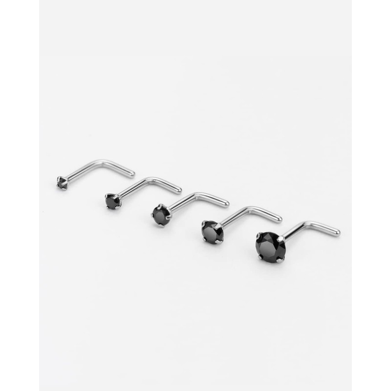 5pcs 18g Nose Rings Studs 1.5mm 2mm 2.5mm 3mm 4mm Black Round CZ Diamond Nose Studs Cubic Zirconia Nose Stud L Shaped Nose Studs for Women Nostril Piercing Jewelry 18 Gauge Nose Studs L Bend
