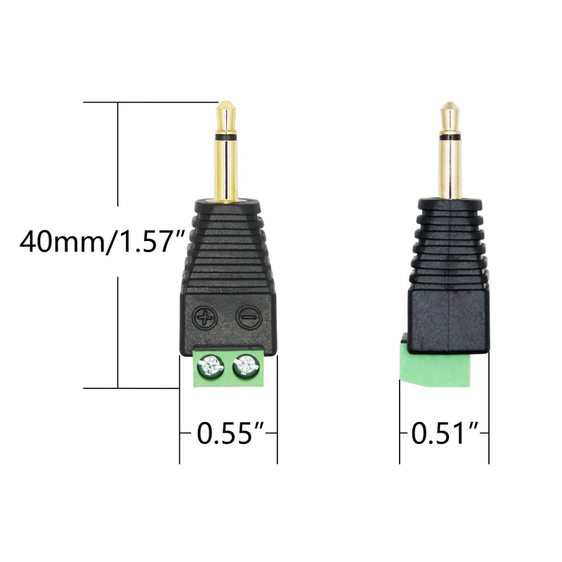 - 【Function】3.5mm Audio solderless screw terminal block connector, one end is DIY 2 Pin solderless screw terminal, and the other end is a gold plated 3.5mm TS 2 pole audio male plug connector, let you easily connect the pigtail open end audio cable to the terminal , for audio signal transmission or DIY replacement & repair.