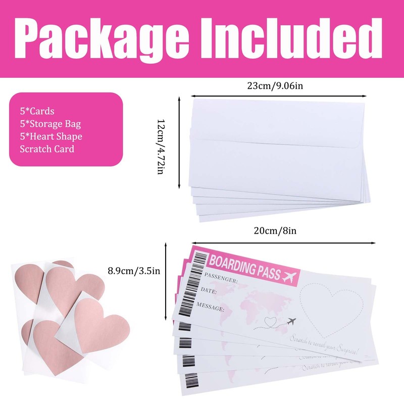 5PCS Boarding Pass Scratch Card with Envelopes, Surprise Pass Scratch Card, Personalised Heart Scratch Card Funny Holiday Surprise Reveal for Wedding Party Birthday Invitations