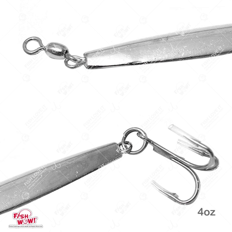 5pcs Fish WOW!® 4oz Diamond Jigs Chrome Silver jig with a Treble Hook